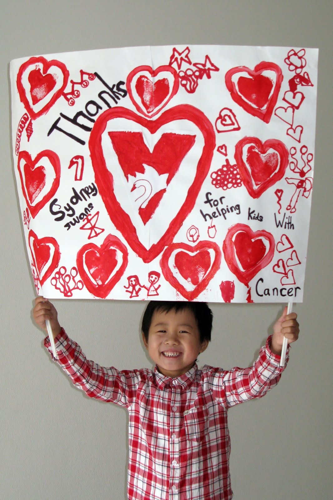 Jeremy was especially excited to be part of the guard of honour (with Stephanie and some other children of Redkite families) when the Sydney Swans ran onto the field. Last year, he wasn't allowed onto the field because he was too young. Unfortunately, our seats were at the opposite side of the field and we couldn't see any of the guard of honour because of the huge 4m high banner that the Sydney Swans run through.